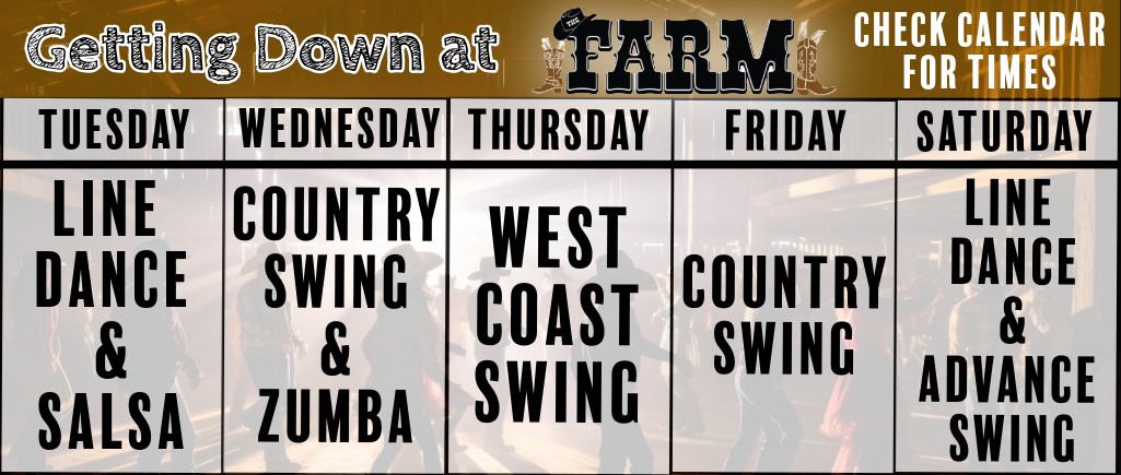 We are the place to be! No matter what you are looking for– a place to learn, dance, or have fun and socialize, you can find it here on The Farm!